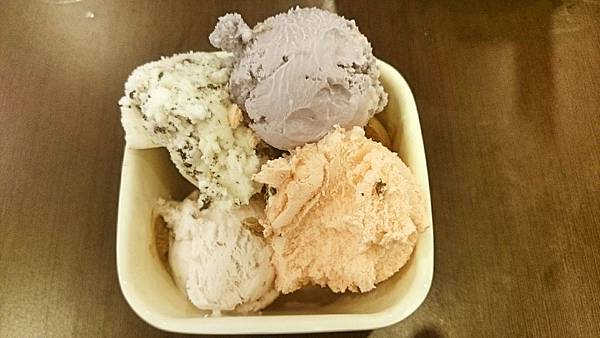 進門入座後我一開始遇到的就是冰淇淋了,店家使用的是小美品牌,因為我們在挖的時候不小心把桶子給提起來才看到的。