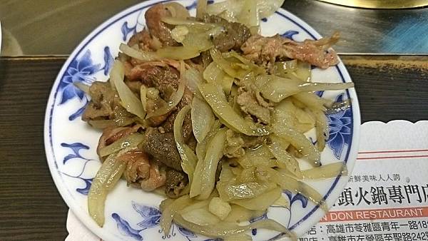 牛肉,店家詢問完後會端去廚房另外炒,而不是當客人面前在鍋子裡炒,所以跟我以前吃到的有些不同,且有加入了洋蔥,可以跟牛肉片一同下鍋煮,炒過之後香氣會飄散出來,可惜肉片有嚼感又過老。