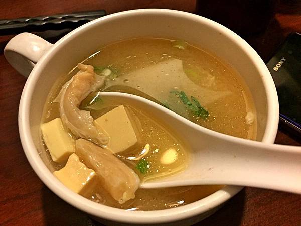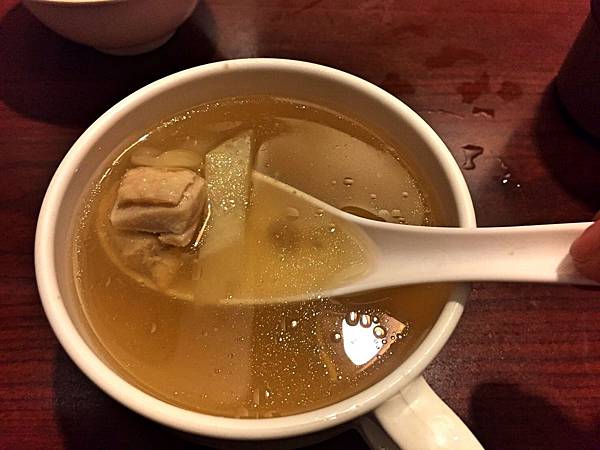 鳳梨苦瓜雞湯和味增魚湯,店家除了火鍋之外就這兩種湯品。兩種喝起來滋味都稍嫌淡薄,各自都沒把特點發揮出來,用料也很少,除非用餐一定要喝湯的人之外,不然只是點來添加飽足感而已。