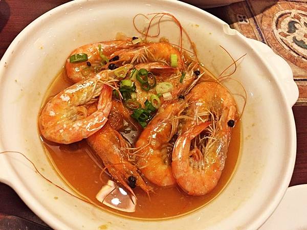 東坡蒸蝦和醉月東坡肉,蒸蝦的蝦子新鮮,口感緊實,還不錯吃,雖然這道菜店員有可能會落單,要特別叮嚀一下。東坡肉則是店家招牌,滷得醬色油亮,軟Q鹹透。且瘦肉鮮嫩美味,肥肉微Q不膩,極度下飯,但缺點就是一定要配飯,不然單吃有點鹹。