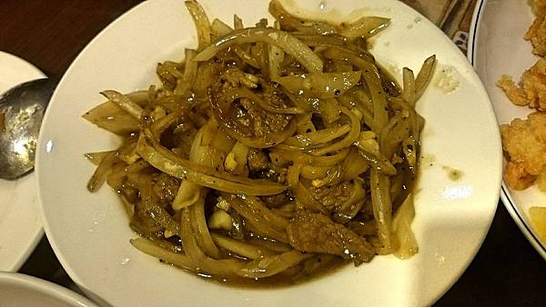 紅燒牛腩和黑胡椒牛肉,牛腩口感軟嫩有加,醬汁略鹹微稠好下飯。黑胡椒牛肉有使用奶油下去拌炒,多了股奶油香氣來引發用餐客人的食慾,但牛肉過老,蠻可惜的。
