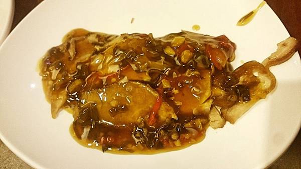檸檬魚片和鳳醬蒸鮮魚,兩種調味都有些微酸度,魚片肉質較軟嫩,鮮魚紮實了點,但鮮魚鳳醬嚐起來散發著淺薄的酒味,另外有魚刺藏身在裡面,這點要注意一下。
