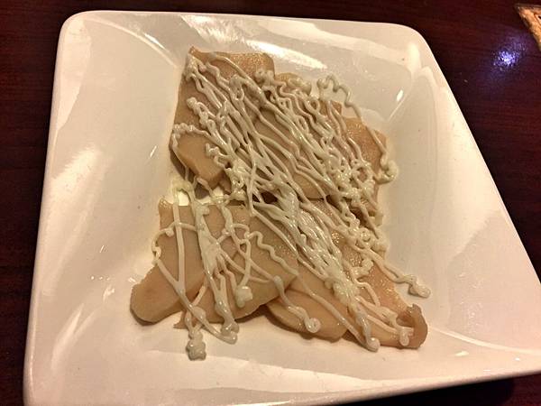 蘆筍沙拉和代鮑沙拉,因為我們點的菜色很多,所以類似性質的我就一併提起吧。蘆筍新鮮脆口,鮑魚就一般喜宴冷盤上常見的罐頭鮑片,淋上美乃滋就很好吃了。