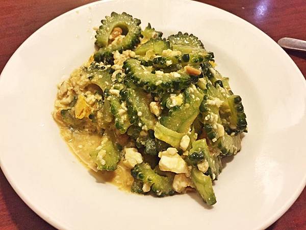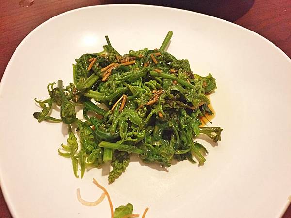 薑絲野蓮、梅香野菜和鹹蛋苦瓜,野蓮很清脆,而野菜給的是龍鬚菜,淋上了梅子醬調味,酸酸甜甜的挺開胃。鹹蛋苦瓜則是使用了山苦瓜,鹹蛋黃完美的包覆上去,只是山苦瓜真的很苦,還好有鹹蛋黃的中和,不然就要真的成為人上人了。