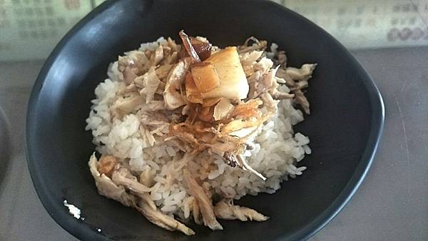 雞肉飯,配菜剩醃漬蘿蔔而已,但雞肉絲給不少且有些還帶皮,口感嫩度很不錯。而口味因為有油蔥酥的加持,多了股誘人食慾的味道,只是淋醬醬汁很薄弱,沒有雞油的香氣和滷汁的鹹度,白白浪費了這麼好的油蔥雞肉絲,可惜了點。