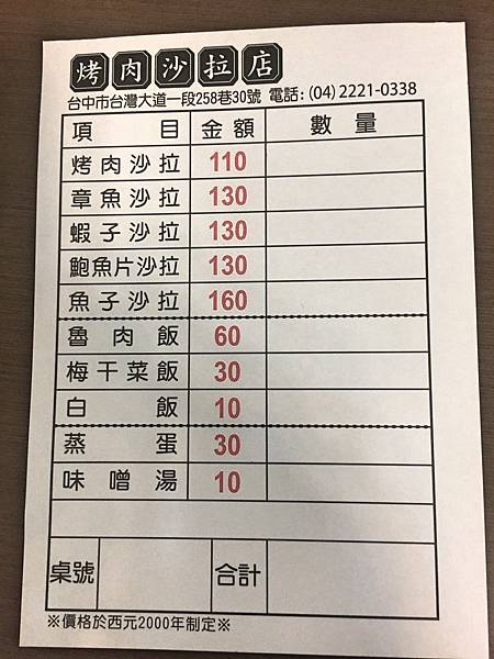 烤肉沙拉是招牌,其他就海鮮沙拉居多,飯類則分魯肉飯和少見的梅干菜飯,湯品僅有味增湯能選而已。