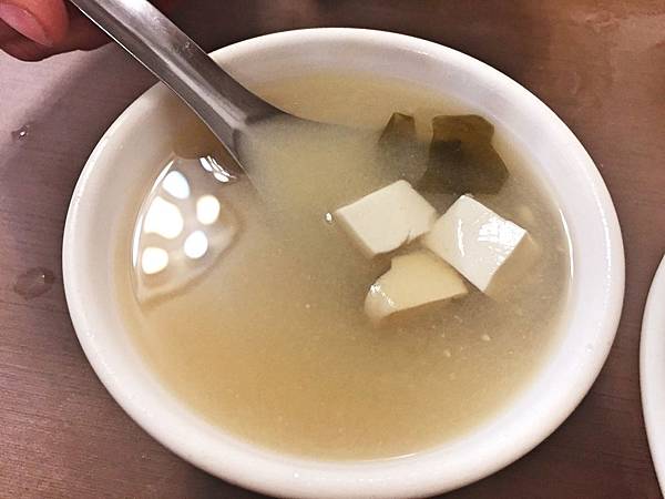 味增湯,裡頭僅放了少量豆腐和微量海帶,湯頭則是偏鹹不甜,還好價格便宜。