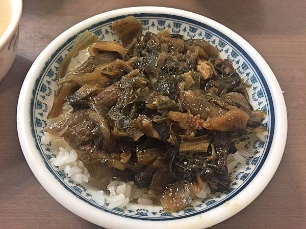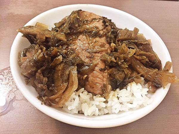 梅干菜飯和魯肉飯,兩者的差別只是多了塊魯肉,我就一併提起。梅干菜鹹度恰當,口感軟脆,但白飯沒淋什麼醬汁,全靠梅干菜的鹹度支援。而魯肉咬起來頗為乾柴,比起烤肉沙拉的肉片來講,根本是天堂和地獄之分,可只點梅干菜飯來搭配就行。