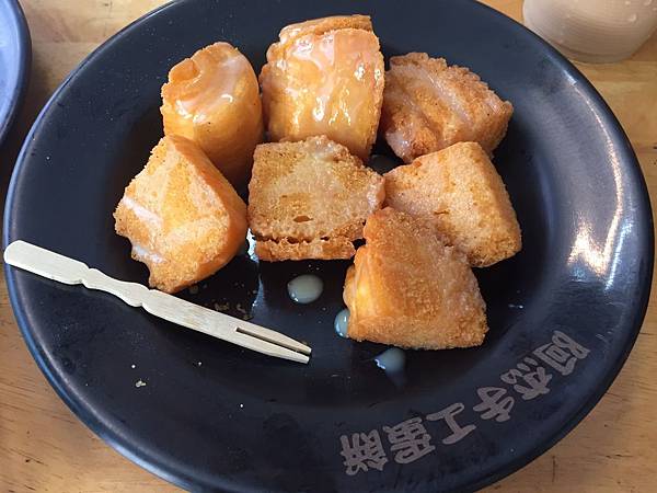 煉戀銀絲卷,銀絲卷被炸得非常有酥度,尤其連銀絲卷內部都呈現金黃狀態了,依玲妹專業判斷說可能浸泡過牛奶後再下去油炸,才會呈現這樣的結果,所以深受她的喜愛。只是吃多會膩,因為銀絲卷上下都吸滿了油脂,兩人一盤剛剛好。