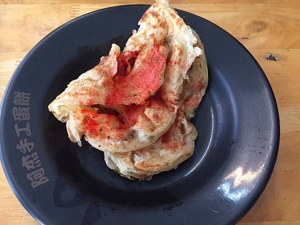 粉味(甘梅)蔥抓餅,只是在蔥抓餅上頭灑了大量甘梅粉,但兩者非常不搭,沒有衝突的美感可言,調味料和食材就形同陌路,還是正常的吃法比較美味。