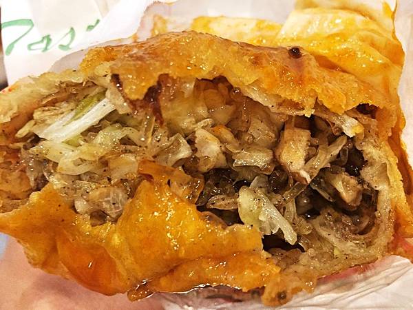 光看名字絕對猜不到是賣什麼東西,但還好攤位上有寫,就是香菇高麗菜包,只是店家名稱真的很特別,也不知道有什麼含意,但不管了只要東西好吃就行,然後一顆40元,素食也可以吃。