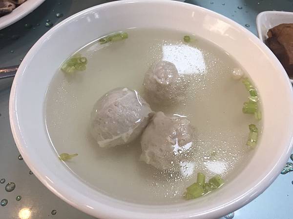 手工虱目魚丸湯,現在湯品有折價,所以我們就點了兩碗不同的湯來喝。這湯頭清淡鮮甜,魚丸很紮實,富有嚼感且魚味十足,就是種貨真價實的感覺。