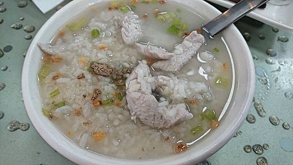 虱目魚粥,這是後面再去用餐所點的,剛好遇到店家一碗35元的優惠期,真是幸運。然後這粥品配料就只有虱目魚肉,沒有常見的蚵仔或土魠魚肉,非常簡單的一碗魚粥。而湯頭喝起來頗為鮮甜,混合了油蔥酥的香氣,還不錯,只是胡椒粉店家灑太多,喝到後面有點嗆辣。另外魚肉口感稍嫌粗糙,需要沾點醬料才會比較好吃。