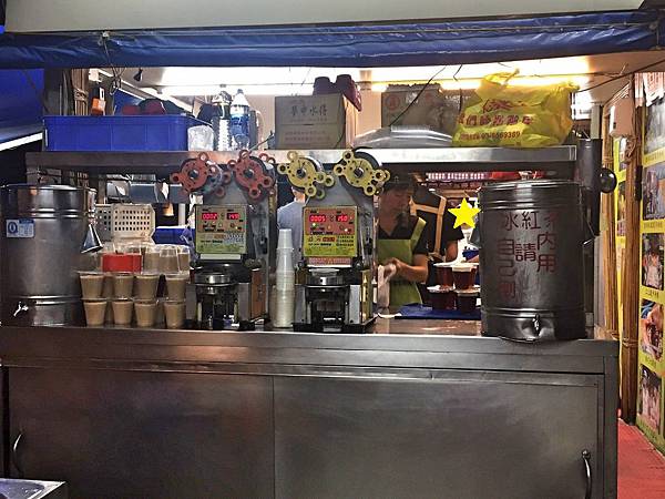 店家有提供免費的奶茶和紅茶,就自己來盛裝。紅茶是古早味紅茶味道,奶茶很普通,算是吃官財板的解膩茶品。