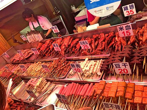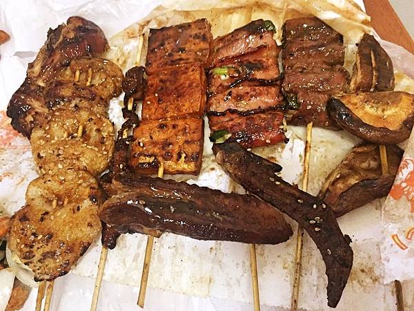 我們來之前有稍微做了功課,這間第一家烤肉串是裡面很夯的排隊名店,所以我們進來的時候就先直奔前來點餐,這樣選完後再去逛,逛完再來拿節省了不少時間。且來到店家門前已經排了不少客人,還好行進速度算快,等沒多久就輪到我們夾取了。