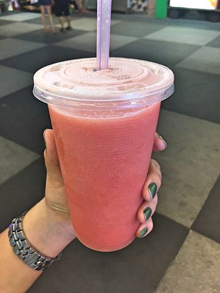 芭芒柳,最後我選了這杯三種水果的混合體,顧名思義就是芭樂、芒果和柳橙。整個酸甜味道超重的,有濃郁的水果味道和果肉被絞碎的沙沙感,還不錯喝。