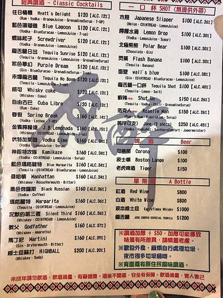 在等待的時間可以拿菜單觀看一下,店家除了經典調酒之外,特別的就是小米酒調酒和馬告調酒,這可是外面買不到的品項,另外店內還有張銷售排行榜的牌子可供參考。