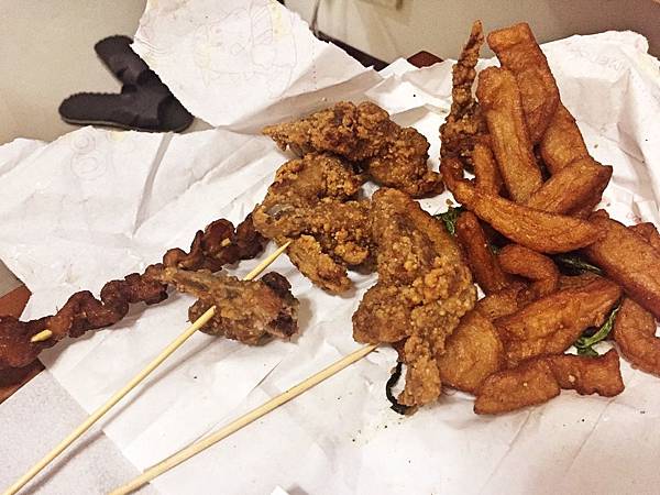 綜合炸物,我們買了三角骨、雞皮、甜不辣和炸螃蟹。三角骨含油量蠻高的,雖然炸粉有顆粒感,但並不是在很好的狀態,且調味不合我的口味,只好pass。雞皮的話,口感很Q,但沒有酥度,不怎麼美味。而甜不辣的魚漿味道很奇怪,讓我們無法接受,最後螃蟹肉質太軟,且蟹腳沒有肉,雖然有炸粉在殼上面,但吃起來還是覺得普通,毫無驚豔感可言。