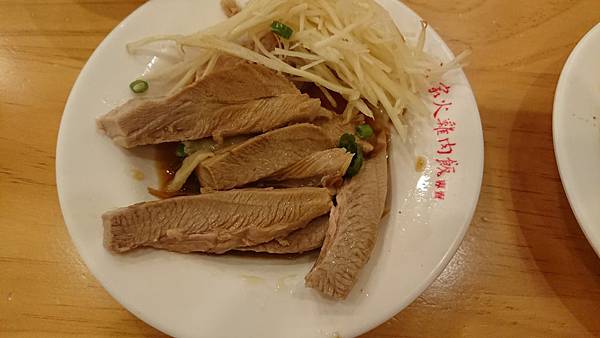 肉片切盤,份量沒有很多,但雖然寫的是肉片,可是店家把火雞肉切得還蠻厚的,咬起來頗為結實,軟柴比約4:6,卻不是我喜歡的口感。