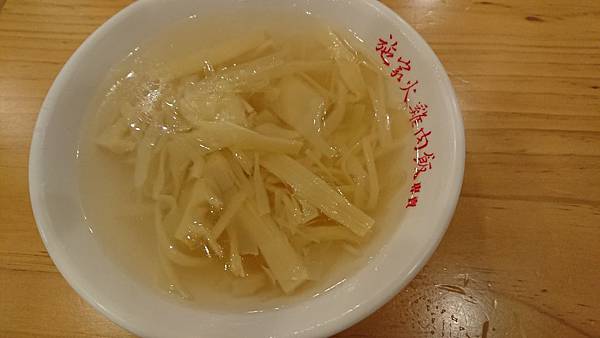 筍干湯,本來想點白菜魯湯,但已售罄只好退而求其次選了筍干來吃。這筍干吃起來微酸略苦,讓我大皺眉頭,完全不是我想要的滋味。