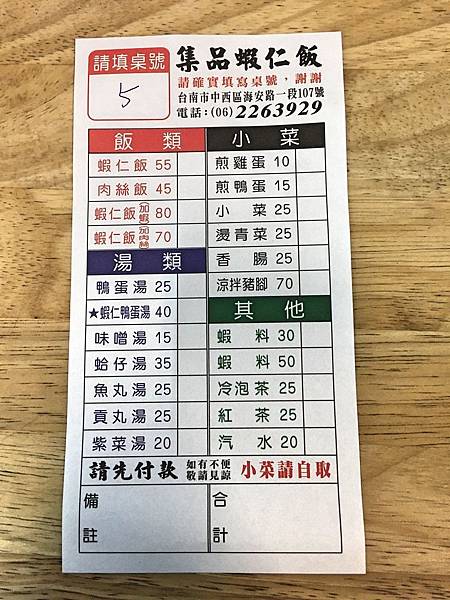 桌上就有菜單,直接填寫即可,然後選項沒有很多,且飯類的價格偏高。