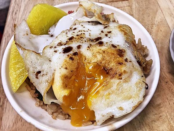 煎鴨蛋,會點煎蛋的目的就是要看半熟蛋黃流出來的快感,且拌著飯一起吃可以提升不少口感和風味,更何況鴨蛋黃的濃稠度甚過雞蛋,特別的黏稠滑順,還有股煎蛋香氣飄散出來,讓人垂涎三尺,只是點了兩顆只有一顆會流動,另一顆則是稍微凝固,沒辦法達到相同品質,這就要靠運氣了。