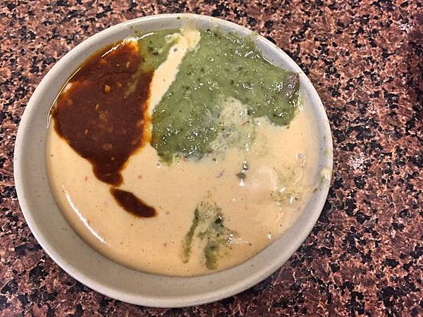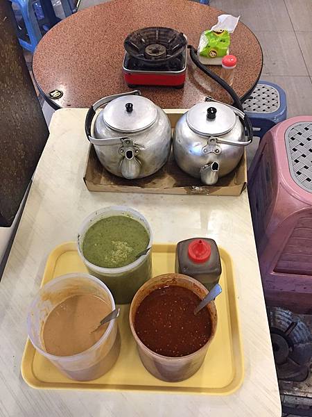 店內一角有沾醬自取區,分別有腐乳醬、辣椒醬和九層塔醬,其中九層塔醬很少出現,還蠻特別的,只是會不會跟薑母鴨合搭就讓我們來一試便知。