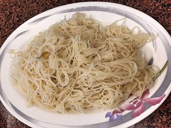 麵線,油蔥香氣很足,口感稍帶點咬勁,配著湯頭一起食用也不錯。