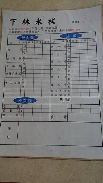 內用或外帶都需要劃單子,這樣店家也比較好出菜,且品項不算多,就以飯和湯為主。