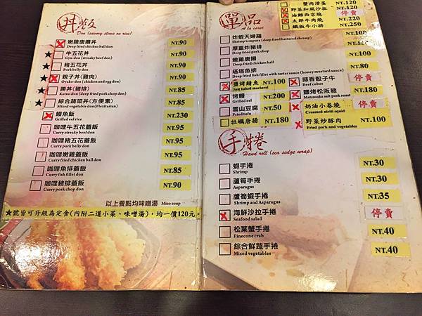 菜單本上有點餐步驟可以參考,且店家販賣品項不算少,丼飯、定食、烏龍麵、咖哩和手捲,讓客人有更多的選擇性。