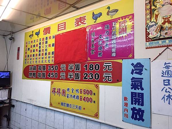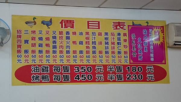 菜單就在店內牆上,而油雞飯右邊品項似乎沒再販賣了,因為我們想點廣東炒飯被打槍。