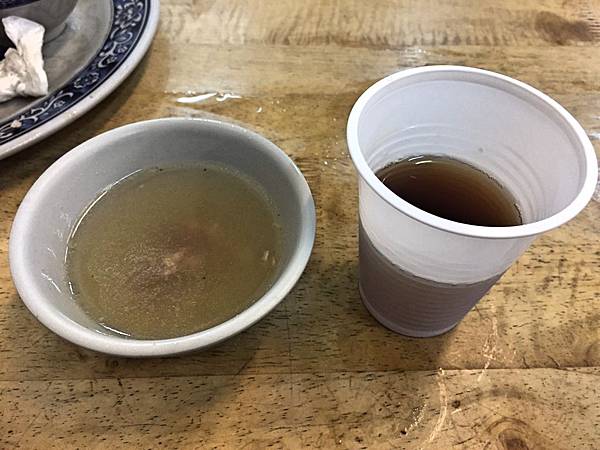 店家有提供湯品和紅茶,而湯品用了大量鴨骨頭下去熬煮,所以喝起來很鮮美,但油了點,然後紅茶甜度尚可。