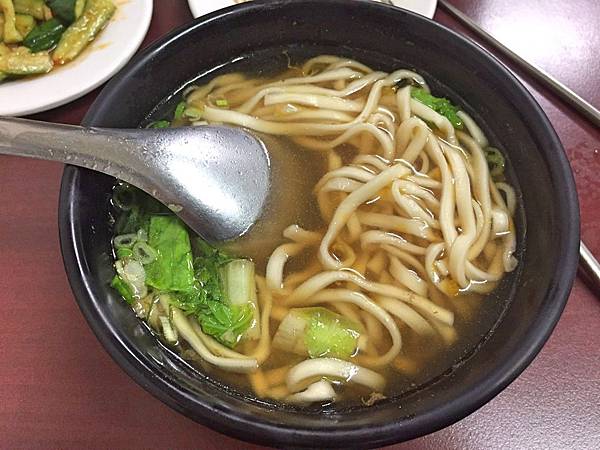 排骨麵,麵條和排骨是分開來的,然後麵條和牛肉麵的一樣就不加以敘述,但份量給很多就是了。而湯頭清爽鮮甜,還放了酸菜進去提味,另外排骨店家事先幫忙切塊,好方便食用,且外層炸粉頗為酥脆,似乎店家有醃漬過,嚐起來就是有點與眾不同,肉質則有厚實感,越吃越涮嘴。