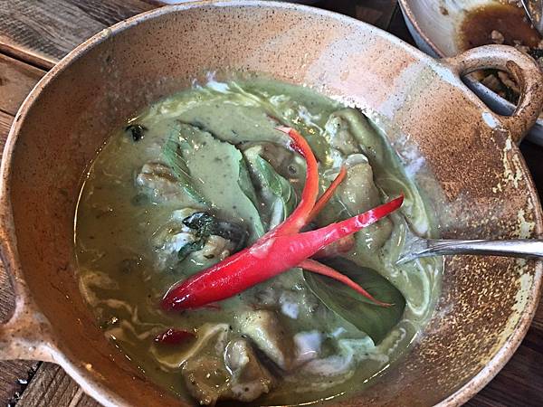 綠咖哩雞,咖哩溫和偏甜,非常下飯,靠這醬汁多扒幾碗飯也沒問題。然後雞肉鮮嫩有嚼感,蠻好吃的,我吃過大多數泰式餐廳的這道菜幾乎不會讓人失望到。