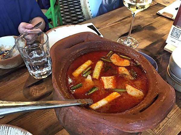 冬蔭酸辣海鮮湯,先說湯頭,嚐起來有點辣口且過鹹,不怎麼喜歡。而裡頭湯料有魚肉、杏鮑菇和蝦子,用料頗為空虛,幾乎大部分舀起來的都是杏鮑菇,海鮮比較少,看來店家只要有寫海鮮兩個字的餐點都要有名不副實的心理準備。