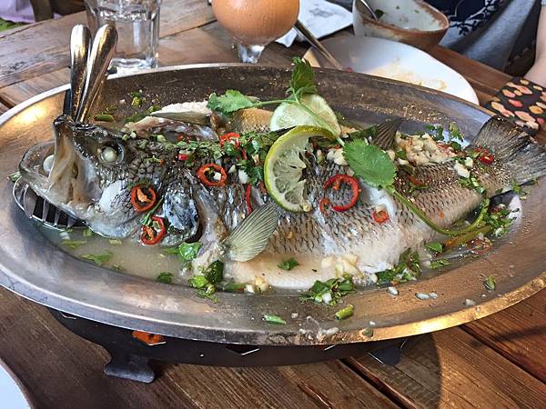泰式檸檬魚,店家使用了一般的鱸魚,魚肉較為紮實,新鮮肥美,而調味略微酸辣,是中規中矩的表現。