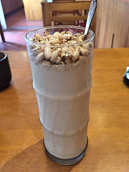 米麩奶茶,是套餐飲料,米麩乍看下很像是爆米香顆粒,軟掉後會溶在奶茶裡,多了股沙沙感,且喝起來不甜膩,蠻順口的。