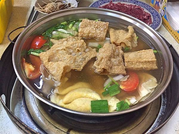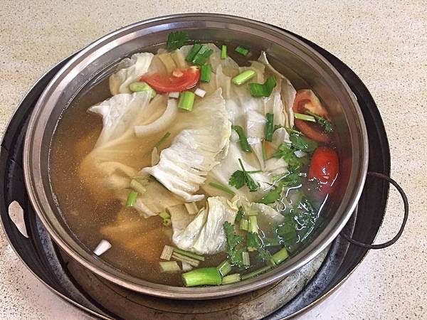 基本鍋底,鍋底一份就100元,裡面有高麗菜、番茄和洋蔥,一開始味道較為淡薄,可是陸續加了不少配料和肉片下去涮煮後,喝起來清甜味更盛,越喝越順口,讓人不自覺多喝了好幾碗。