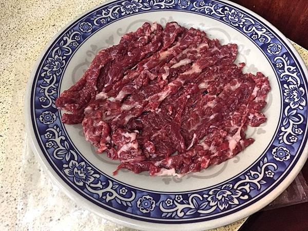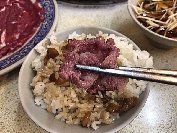 特優頂級鮮牛肉,我們總共點了兩盤肉,但是另外一盤沒有拍到就用文字描述吧。兩盤肉的部位和口感完全不同,從肉質油花分布狀況來看就可以得知了,油花較多的牛肉煮起來軟鮮之外,還多了股脆度。而另一盤則是少了筋絡阻礙,口感非常軟嫩,清燙幾秒變色後就可以安然入口,一咬下去牛肉鮮味馬上油然而生。且越是咀嚼牛肉自身的甜度就徐徐散發出來,非常美味,品質確實有符合菜名所示。唯一可惜的是肉片太少,不然以我在屏東夜市或者萬丹吃過的牛肉爐來說,價格同樣都是300起跳,但這兩個地方的店家其牛肉厚度和份量和這間相差極大。