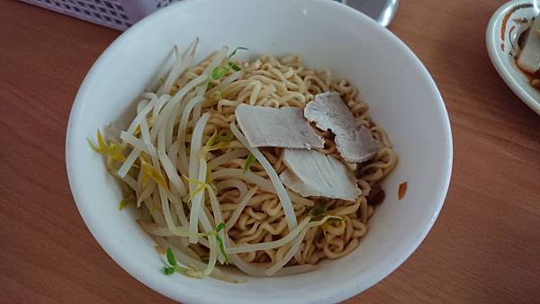 招牌意麵(小),首先麵條是店家的招牌,咬起來頗為厚實又有嚼勁,還不錯。然後配菜給了豆芽菜和肉片,而調味偏像是醬油帶點紅蔥油的風格,還可以,但散發出來的香氣沒有使用豬油來得逼人和口感滑順。