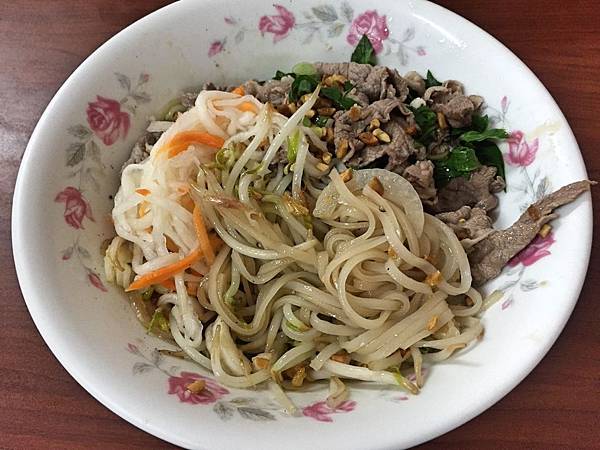 牛肉乾麵,店家會附贈一碗清湯,喝起來和湯麵的相差無幾,當然放個少許檸檬汁下去更加美味。然後這碗我選擇了河粉,口感不軟爛且帶點嚼勁。而配菜蘿蔔絲的酸甜滋味解膩正好,最後牛肉片份量蠻多的,咬起來軟而不柴,鮮味十足,還可以。
