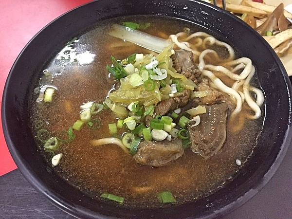 牛肉麵(小),首先湯頭喝起來是紅燒口味,但偏屬清爽不油膩。然後麵條店家給了手工拉麵,富有咬勁和嚼感,蠻好吃的。而牛肉有不少塊在裡頭,但口感不一,帶著筋絡部分比較軟嫩之外,其餘皆較柴口。