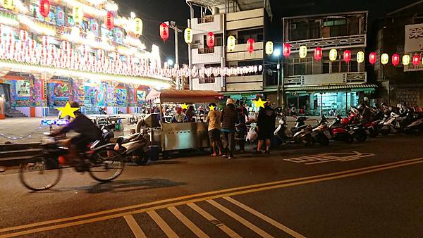 這間同樣在路上閒晃時所看到的,因為在廟門口的攤位前有這麼多人環繞著,後面廣場座位區也坐滿了不少人,這樣就足以引起我的好奇心了,先不管店家賣什麼,二話不說馬上停好車加入嚐鮮去。