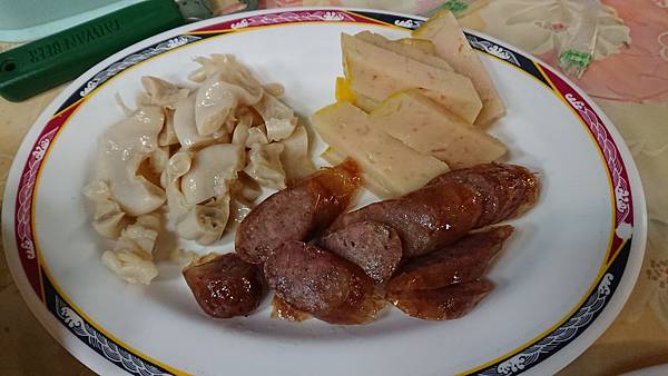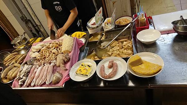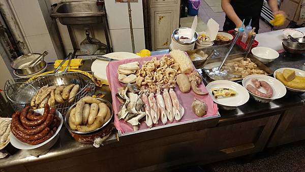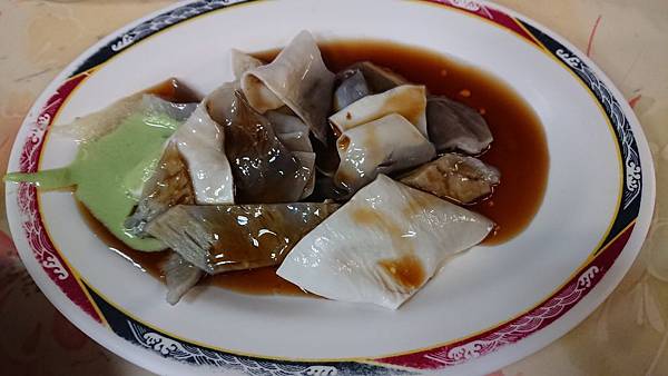 綜合切料,我點了生腸、蟳丸和香腸,生腸店家處理的很乾淨,沒有異味存在,但要沾醬才會有味道,且口感偏軟。而蟳丸咬起來挺實在,但粉感有點重,不太喜歡。最後香腸紮實有咬勁,味道濃郁,香氣也足夠,屬於店家必點品項之一。