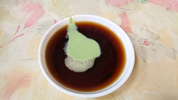 點完切料入座後,店員會送上一小碟醬料,是哇沙米蒜泥醬油膏,吃切料的基本款。