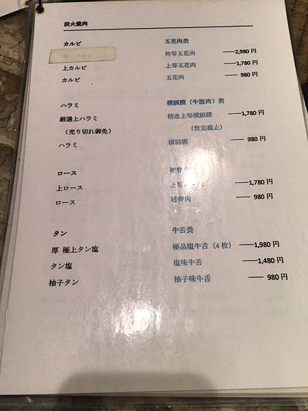 來日本吃燒肉行程是必備的,不管怎樣都一定要排間燒肉店家進去,就算是吃到飽的也爽快,所以才會有今晚的燒肉之行。然後店家看起來不太起眼,位置和裝潢都普通,但有會講中文的店員和中文菜單,對於我們來講可是一大便利,就趕緊進去大快朵頤一番。