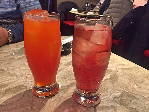 黑加侖蘇打和金巴利柳橙酒,蘇打汽水是水果風味的,喝起來有氣泡又帶點甜度,受女性歡迎。而柳橙酒則是有點偏苦,不管酒的苦味和柳橙的澀味都摻雜在一起。