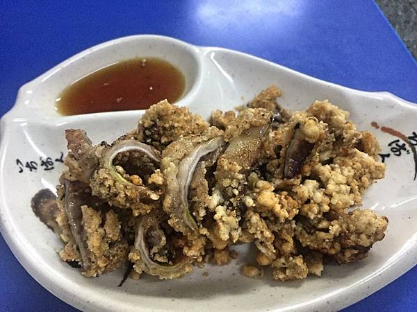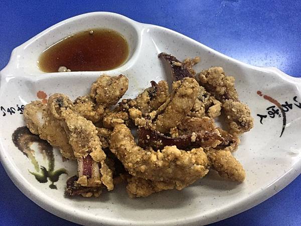 炸魷魚,聽到蠻多客人點這道小菜來吃的,所以我們也就順其自然點了一份來嚐鮮。然後魷魚外層炸粉很酥脆,好像裹了地瓜粉下去油炸,能吃到顆粒感,且口感軟Q有咬勁,還帶點甜味,蠻好吃的。