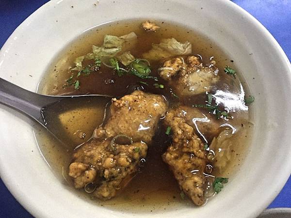 土魠魚羹,羹湯稠度普通,但鹹甜滋味顯明深厚,吃到後面稍嫌膩口。而土魠魚塊因為浸泡過久的關係,不用去期待酥脆感,然後魚肉肉質稍微粗糙,吃起來還好而已。