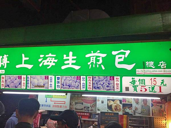 我們吃完麻油雞之後,走回主要的夜市幹道上,看到這間生煎包排隊人潮也不少,於是就上前買來嚐試一下。